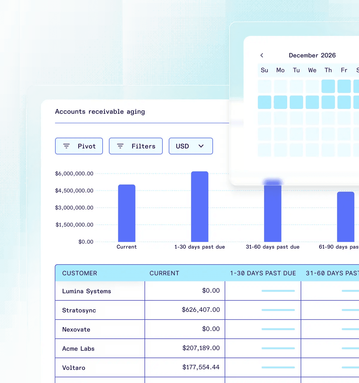 - AR aging reports: Understand cash flow and identify overdue invoices